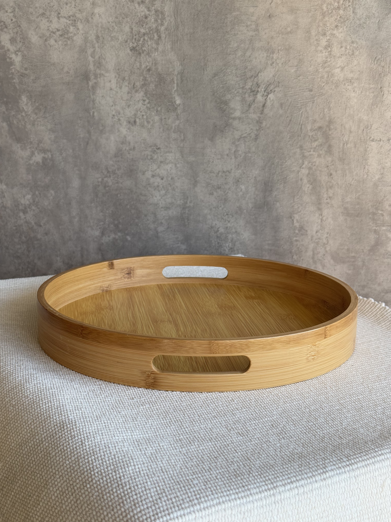 Disfruta de tus comidas con estilo gracias a esta elegante bandeja de bambú, ideal para desayunos en la cama o como accesorio decorativo. Fabricada con bambú natural, aporta un toque cálido y moderno a tu hogar. Su tamaño compacto y diseño ligero la hacen práctica para transportar y utilizar en cualquier lugar. Medidas: 35cm de diámetro x 4,8cm de alto